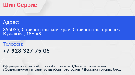 Шин-Сервис по адресу 355035, Ставропольский край, Ставрополь, проспект Кулакова, 18Б к8 в дальнейшем Организация, размещена в следующих категориях: