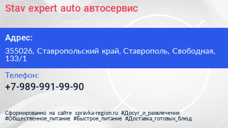 Stav expert auto, автосервис по адресу 355026, Ставропольский край, Ставрополь, Свободная, 133/1 в дальнейшем Организация, размещена в следующих категориях: