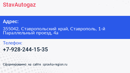 StavAutogaz по адресу 355042, Ставропольский край, Ставрополь, 1-й Параллельный проезд, 4а в дальнейшем Организация, размещена в следующих категориях: