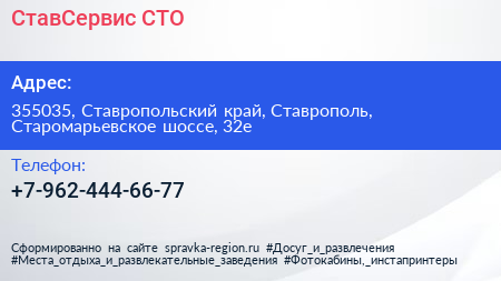 СтавСервис, СТО по адресу 355035, Ставропольский край, Ставрополь, Старомарьевское шоссе, 32е в дальнейшем Организация, размещена в следующих категориях: