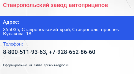 Ставропольский завод автоприцепов по адресу 355035, Ставропольский край, Ставрополь, проспект Кулакова, 18 в дальнейшем Организация, размещена в следующих категориях: