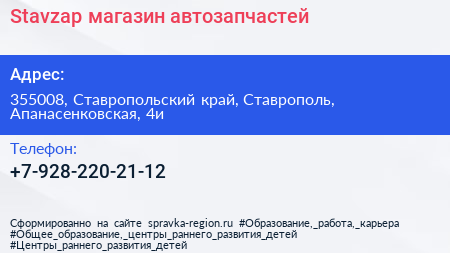 Stavzap, магазин автозапчастей по адресу 355008, Ставропольский край, Ставрополь, Апанасенковская, 4и в дальнейшем Организация, размещена в следующих категориях: