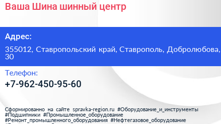 Ваша Шина, шинный центр по адресу 355012, Ставропольский край, Ставрополь, Добролюбова, 30 в дальнейшем Организация, размещена в следующих категориях: