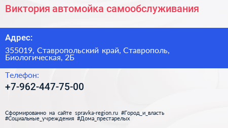 Виктория, автомойка самообслуживания по адресу 355019, Ставропольский край, Ставрополь, Биологическая, 2Б в дальнейшем Организация, размещена в следующих категориях:
