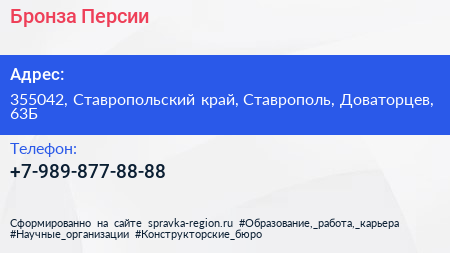 Бронза Персии по адресу 355042, Ставропольский край, Ставрополь, Доваторцев, 63Б в дальнейшем Организация, размещена в следующих категориях: