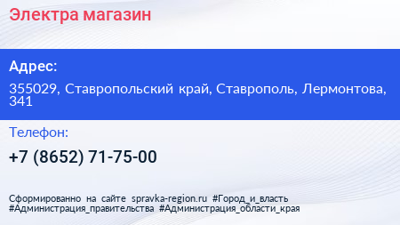 Электра, магазин по адресу 355029, Ставропольский край, Ставрополь, Лермонтова, 341 в дальнейшем Организация, размещена в следующих категориях: