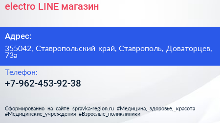 electro LINE, магазин по адресу 355042, Ставропольский край, Ставрополь, Доваторцев, 73а в дальнейшем Организация, размещена в следующих категориях: