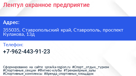 Лентул, охранное предприятие по адресу 355035, Ставропольский край, Ставрополь, проспект Кулакова, 13д в дальнейшем Организация, размещена в следующих категориях: