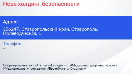 Нева, холдинг безопасности по адресу 356247, Ставропольский край, Ставрополь, Полеводческая, 1 в дальнейшем Организация, размещена в следующих категориях: