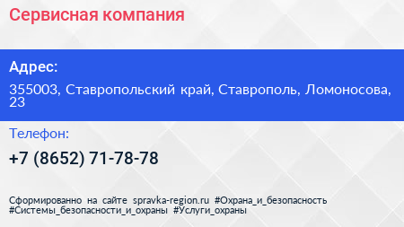 Сервисная компания по адресу 355003, Ставропольский край, Ставрополь, Ломоносова, 23 в дальнейшем Организация, размещена в следующих категориях: