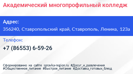 Академический многопрофильный колледж по адресу 356240, Ставропольский край, Ставрополь, Ленина, 123а в дальнейшем Организация, размещена в следующих категориях: