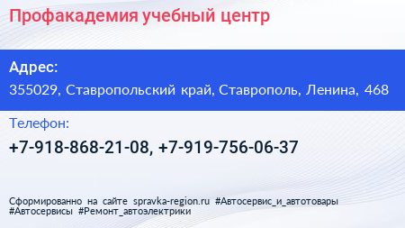 Профакадемия, учебный центр по адресу 355029, Ставропольский край, Ставрополь, Ленина, 468 в дальнейшем Организация, размещена в следующих категориях: