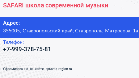 SAFARI, школа современной музыки по адресу 355005, Ставропольский край, Ставрополь, Матросова, 1а в дальнейшем Организация, размещена в следующих категориях: