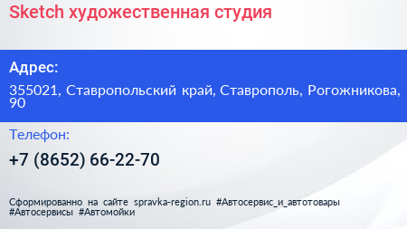 Sketch, художественная студия по адресу 355021, Ставропольский край, Ставрополь, Рогожникова, 90 в дальнейшем Организация, размещена в следующих категориях: