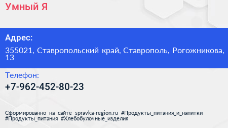Умный Я по адресу 355021, Ставропольский край, Ставрополь, Рогожникова, 13 в дальнейшем Организация, размещена в следующих категориях: