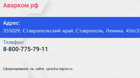 Аварком.рф по адресу 355029, Ставропольский край, Ставрополь, Ленина, 456/2 в дальнейшем Организация, размещена в следующих категориях: