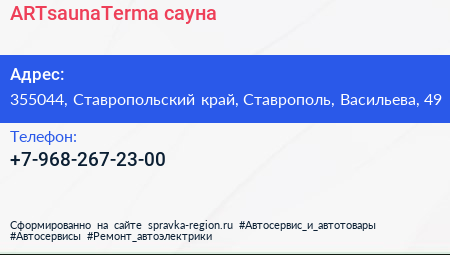 ARTsaunaTerma, сауна по адресу 355044, Ставропольский край, Ставрополь, Васильева, 49 в дальнейшем Организация, размещена в следующих категориях: