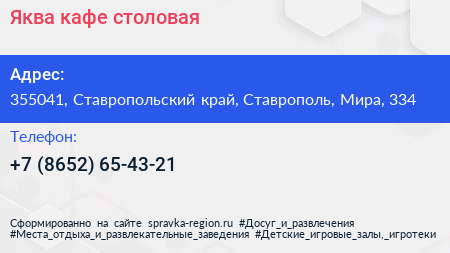Яква, кафе-столовая по адресу 355041, Ставропольский край, Ставрополь, Мира, 334 в дальнейшем Организация, размещена в следующих категориях: