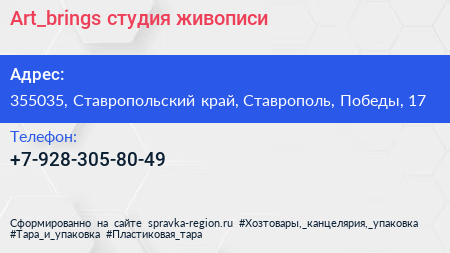 Art_brings, студия живописи по адресу 355035, Ставропольский край, Ставрополь, Победы, 17 в дальнейшем Организация, размещена в следующих категориях: