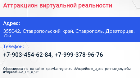 Аттракцион виртуальной реальности по адресу 355042, Ставропольский край, Ставрополь, Доваторцев, 75а в дальнейшем Организация, размещена в следующих категориях: