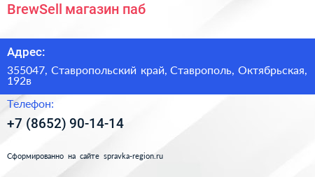BrewSell, магазин-паб по адресу 355047, Ставропольский край, Ставрополь, Октябрьская, 192в в дальнейшем Организация, размещена в следующих категориях: