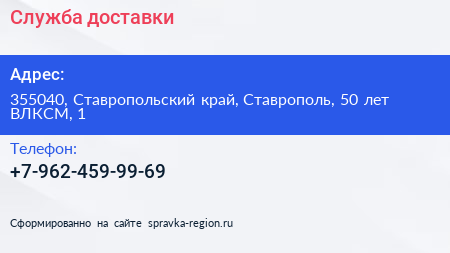 Cлужба доставки по адресу 355040, Ставропольский край, Ставрополь, 50 лет ВЛКСМ, 1 в дальнейшем Организация, размещена в следующих категориях: