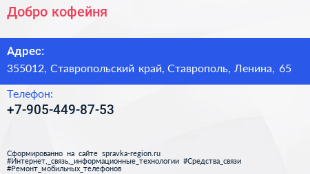 Добро, кофейня по адресу 355012, Ставропольский край, Ставрополь, Ленина, 65 в дальнейшем Организация, размещена в следующих категориях:
