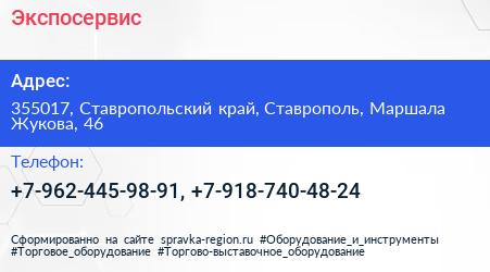 Экспосервис по адресу 355017, Ставропольский край, Ставрополь, Маршала Жукова, 46 в дальнейшем Организация, размещена в следующих категориях: