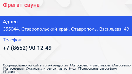 Фрегат, сауна по адресу 355044, Ставропольский край, Ставрополь, Васильева, 49 в дальнейшем Организация, размещена в следующих категориях: