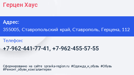Герцен Хаус по адресу 355005, Ставропольский край, Ставрополь, Герцена, 112 в дальнейшем Организация, размещена в следующих категориях: