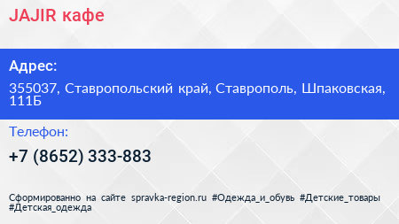 JAJIR, кафе по адресу 355037, Ставропольский край, Ставрополь, Шпаковская, 111Б в дальнейшем Организация, размещена в следующих категориях: