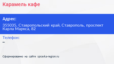 Карамель, кафе по адресу 355035, Ставропольский край, Ставрополь, проспект Карла Маркса, 82 в дальнейшем Организация, размещена в следующих категориях: