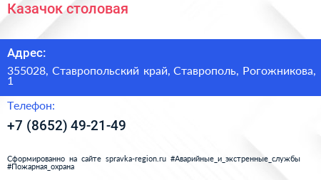 Казачок, столовая по адресу 355028, Ставропольский край, Ставрополь, Рогожникова, 1 в дальнейшем Организация, размещена в следующих категориях: