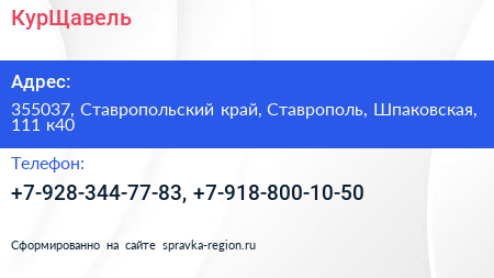 КурЩавель по адресу 355037, Ставропольский край, Ставрополь, Шпаковская, 111 к40 в дальнейшем Организация, размещена в следующих категориях: