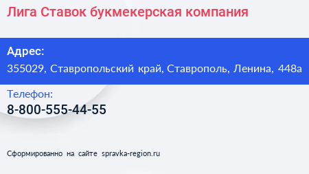 Лига Ставок, букмекерская компания по адресу 355029, Ставропольский край, Ставрополь, Ленина, 448а в дальнейшем Организация, размещена в следующих категориях: