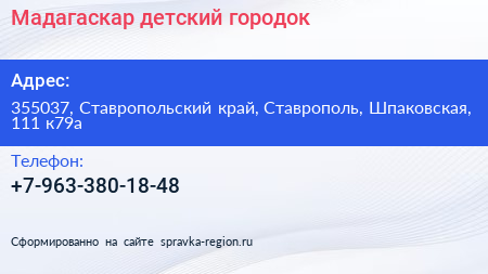 Мадагаскар, детский городок по адресу 355037, Ставропольский край, Ставрополь, Шпаковская, 111 к79а в дальнейшем Организация, размещена в следующих категориях: