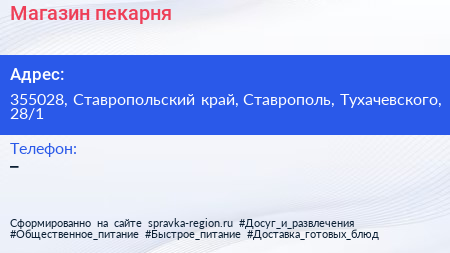 Магазин-пекарня по адресу 355028, Ставропольский край, Ставрополь, Тухачевского, 28/1 в дальнейшем Организация, размещена в следующих категориях:
