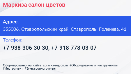 Маркиза, салон цветов по адресу 355006, Ставропольский край, Ставрополь, Голенева, 41 в дальнейшем Организация, размещена в следующих категориях: