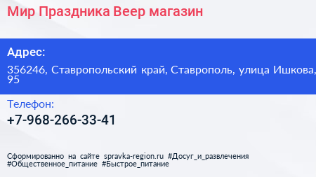 Мир Праздника Веер, магазин по адресу 356246, Ставропольский край, Ставрополь, улица Ишкова, 95 в дальнейшем Организация, размещена в следующих категориях: