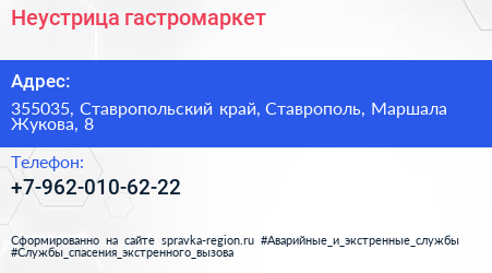 Неустрица, гастромаркет по адресу 355035, Ставропольский край, Ставрополь, Маршала Жукова, 8 в дальнейшем Организация, размещена в следующих категориях: