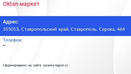 Oktan маркет по адресу 355013, Ставропольский край, Ставрополь, Серова, 464 в дальнейшем Организация, размещена в следующих категориях: