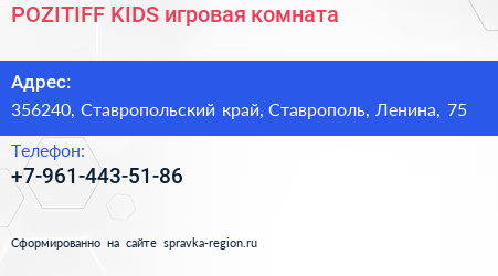 POZITIFF KIDS, игровая комната по адресу 356240, Ставропольский край, Ставрополь, Ленина, 75 в дальнейшем Организация, размещена в следующих категориях: