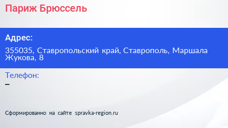 Париж Брюссель по адресу 355035, Ставропольский край, Ставрополь, Маршала Жукова, 8 в дальнейшем Организация, размещена в следующих категориях: