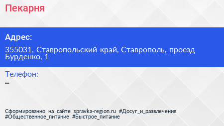 Пекарня по адресу 355031, Ставропольский край, Ставрополь, проезд Бурденко, 1 в дальнейшем Организация, размещена в следующих категориях: