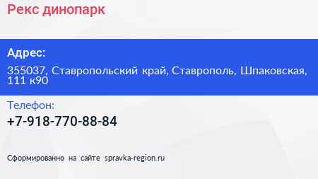Рекс, динопарк по адресу 355037, Ставропольский край, Ставрополь, Шпаковская, 111 к90 в дальнейшем Организация, размещена в следующих категориях: