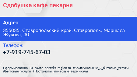 Сдобушка, кафе-пекарня по адресу 355035, Ставропольский край, Ставрополь, Маршала Жукова, 30 в дальнейшем Организация, размещена в следующих категориях: