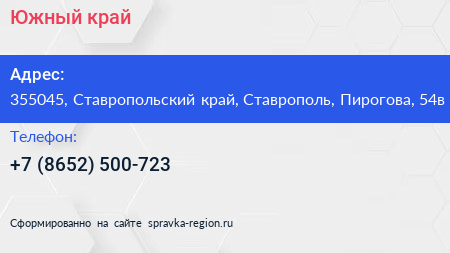 Южный край по адресу 355045, Ставропольский край, Ставрополь, Пирогова, 54в в дальнейшем Организация, размещена в следующих категориях:
