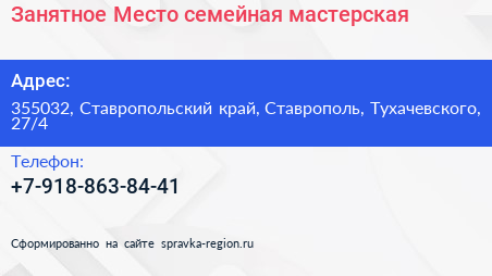 Занятное Место, семейная мастерская по адресу 355032, Ставропольский край, Ставрополь, Тухачевского, 27/4 в дальнейшем Организация, размещена в следующих категориях: