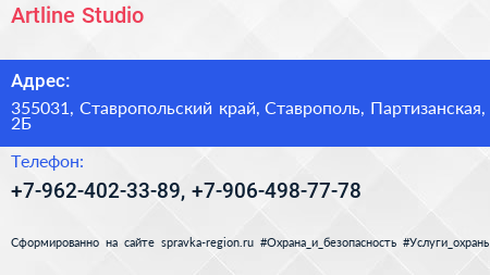 Artline.Studio по адресу 355031, Ставропольский край, Ставрополь, Партизанская, 2Б в дальнейшем Организация, размещена в следующих категориях: