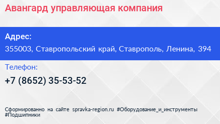 Авангард, управляющая компания по адресу 355003, Ставропольский край, Ставрополь, Ленина, 394 в дальнейшем Организация, размещена в следующих категориях:
